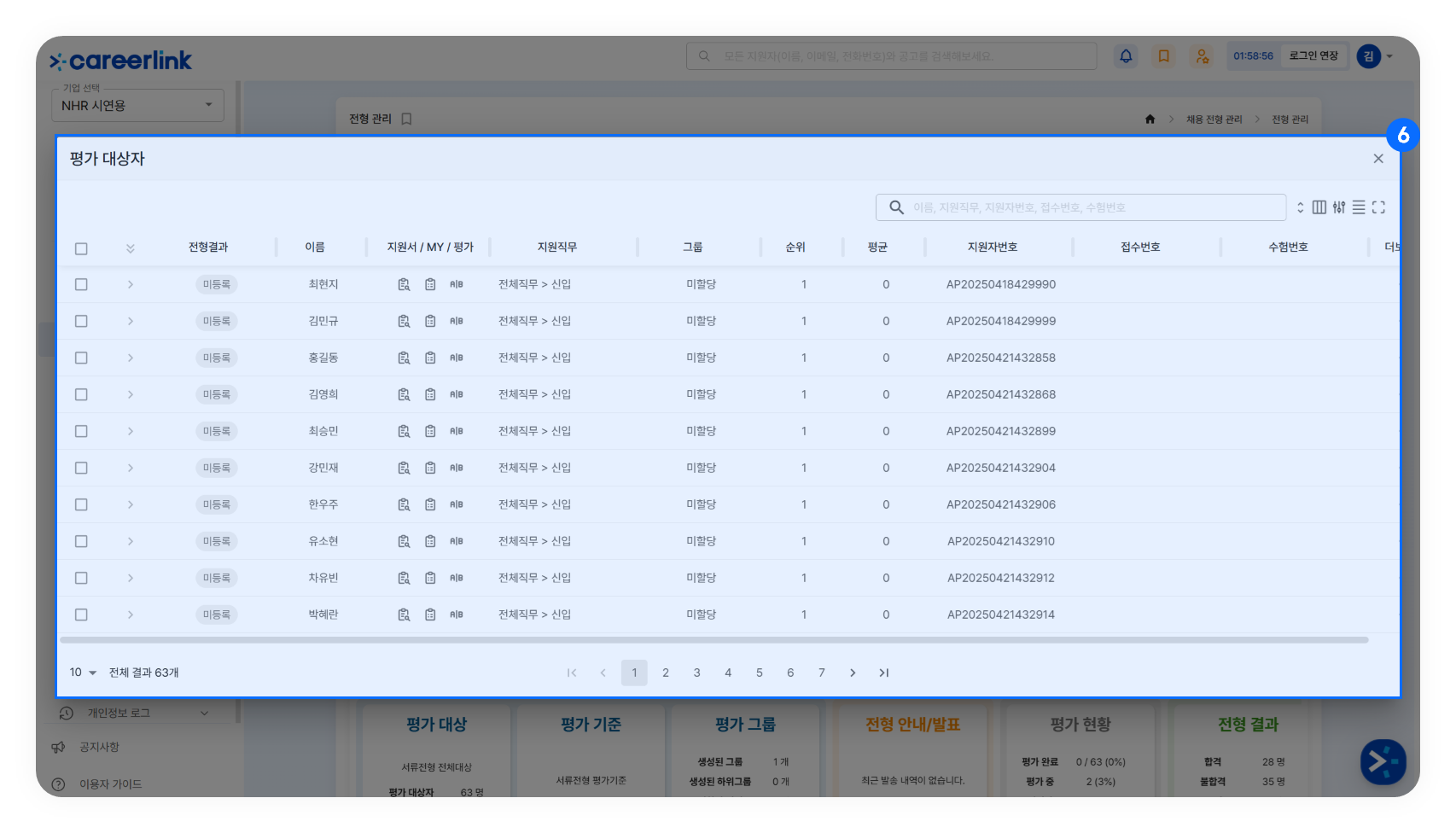 ➏ 해당 전형의 평가 대상자를 확인하실 수 있습니다.