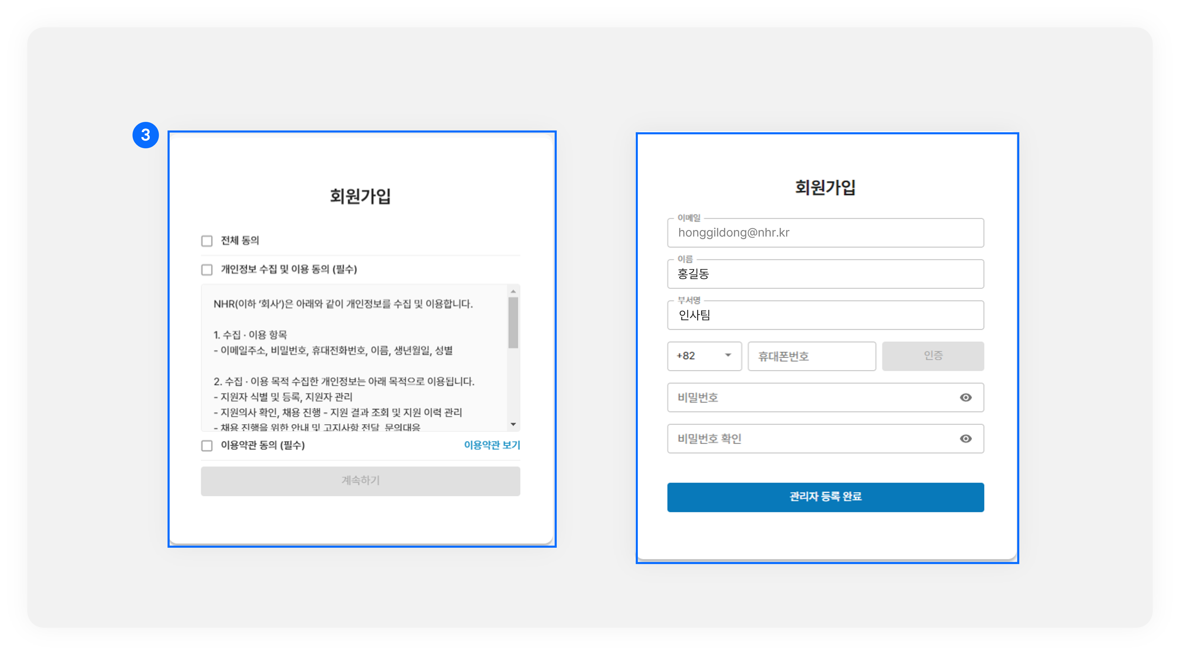 실제 평가자가 참여하는 전형의 경우 평가자 등록이 필수입니다.