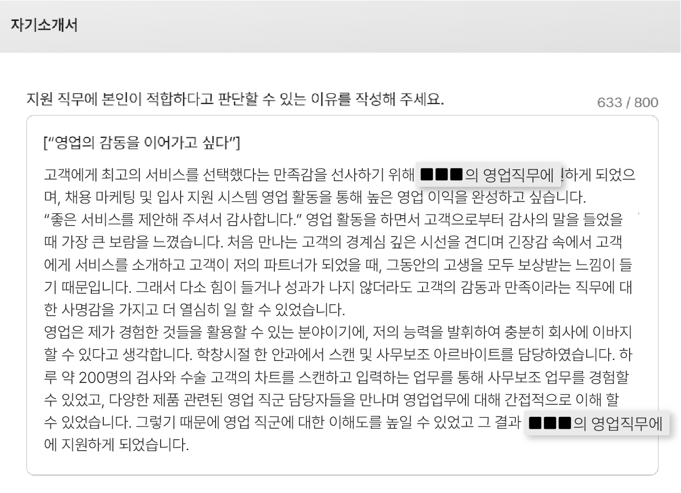 ex) 'NHR' 금칙어 설정 시 지원서의 자기소개서, 경력기술서에 특정 키워드가 블라인드 처리됩니다.