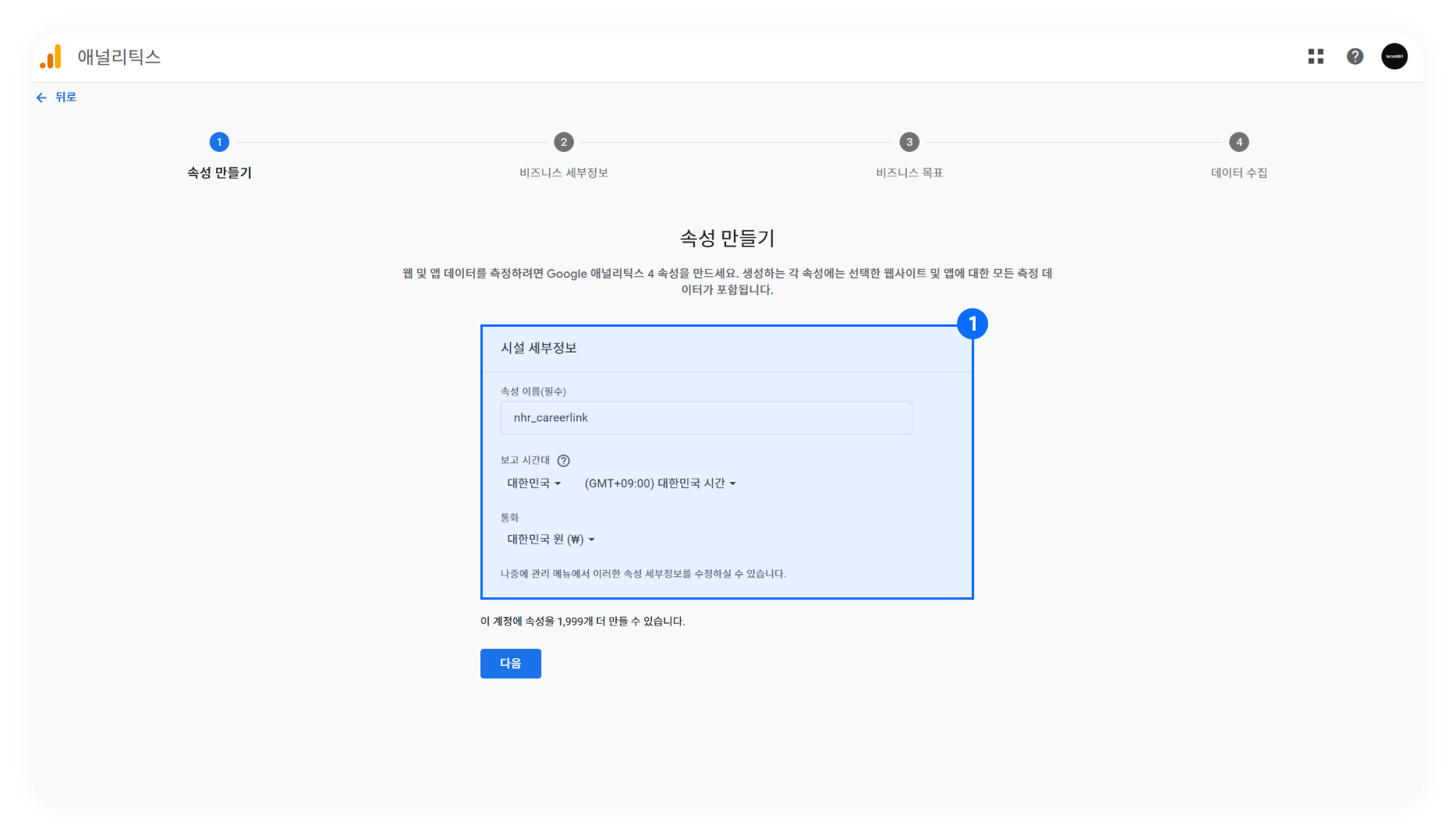 ➊ 구글 애널리틱스(Google Analytics)에 접속하여 로그인 후, 속성 만들기를 입력합니다.