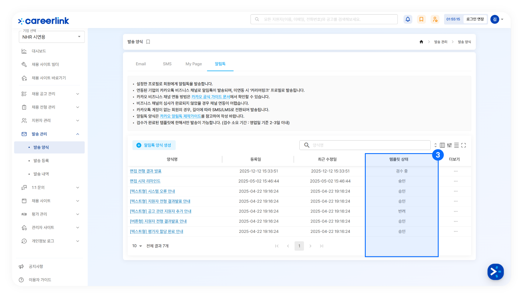μ§μμμκ² μ λ¬λλ Email, SMS, My Page, μλ¦Όν‘ ν νλ¦Ώμ κ΄λ¦¬ν©λλ€. λ§λ€μ΄μ§ ν νλ¦Ώμ μ€λ³΅μΌλ‘ λ€λ₯Έ κ³΅κ³ μλ μ μ©μ΄ κ°λ₯ν©λλ€.