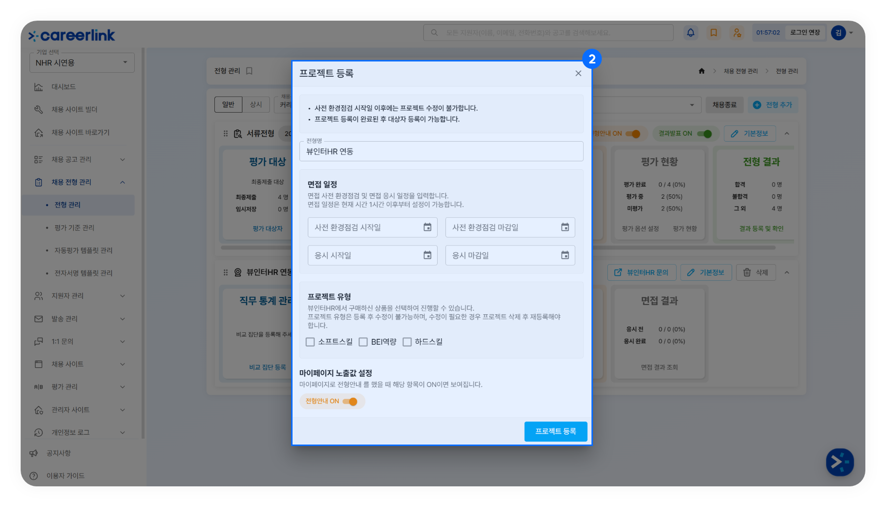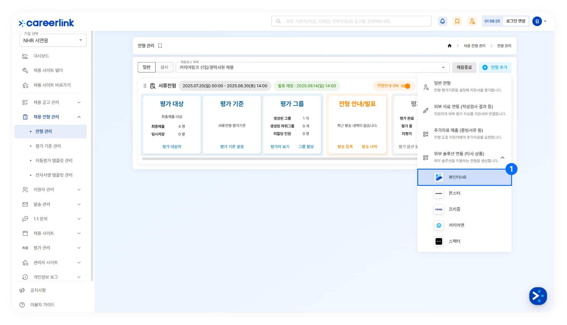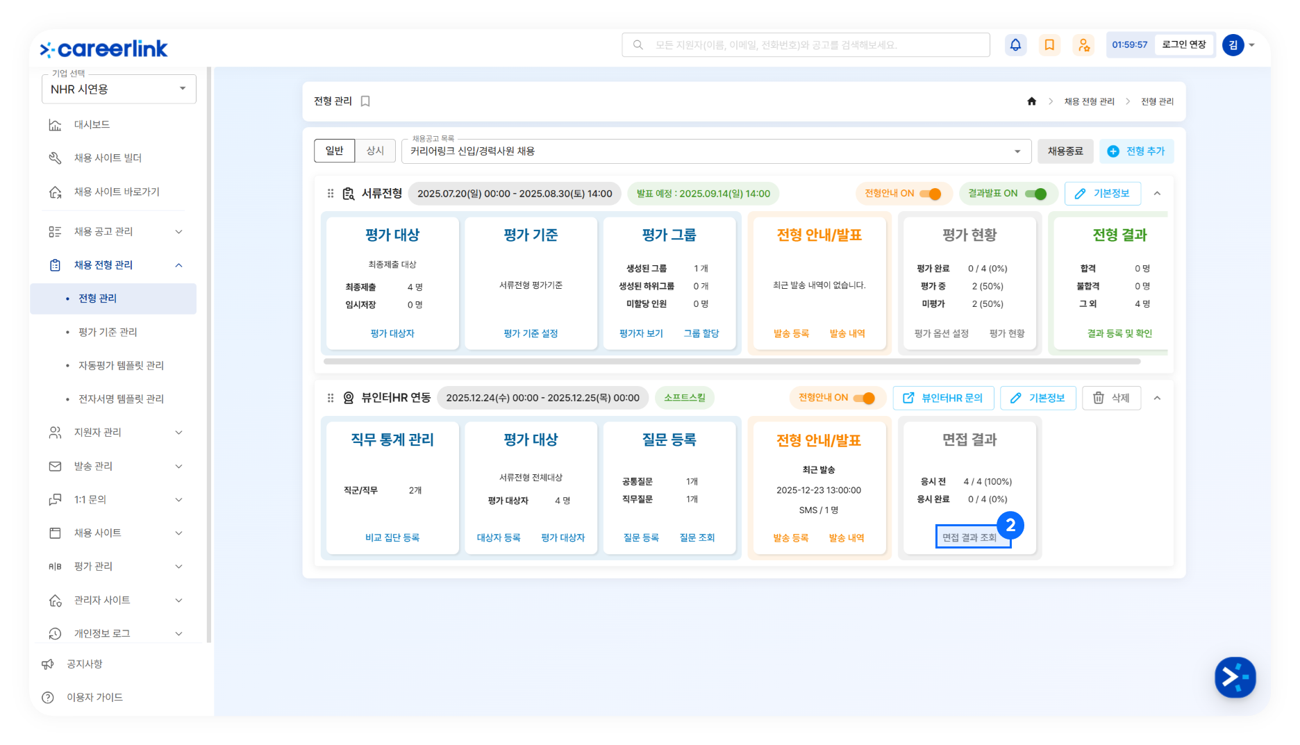 커리어링크 내에서 뷰인터 HR(AI면접) 전형 생성부터 결과 확인까지 모두 사용하실 수 있습니다.