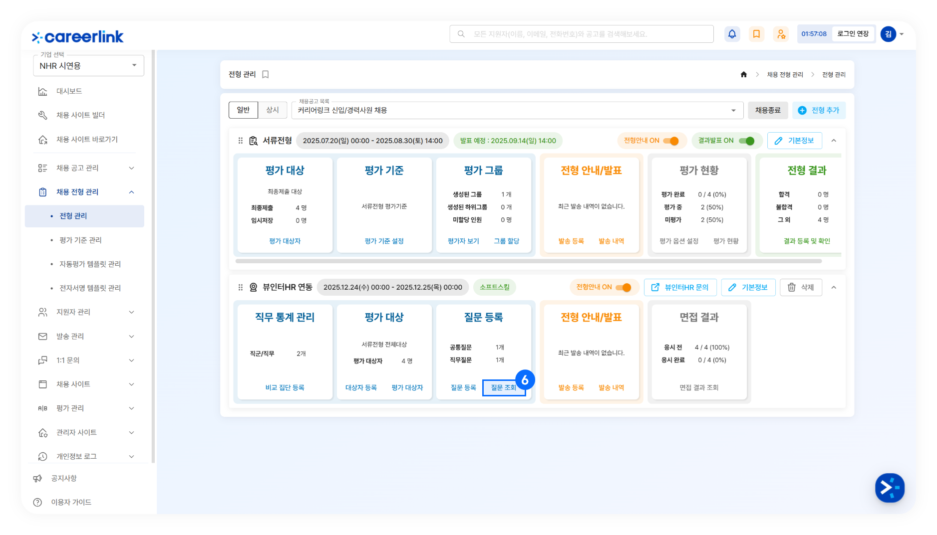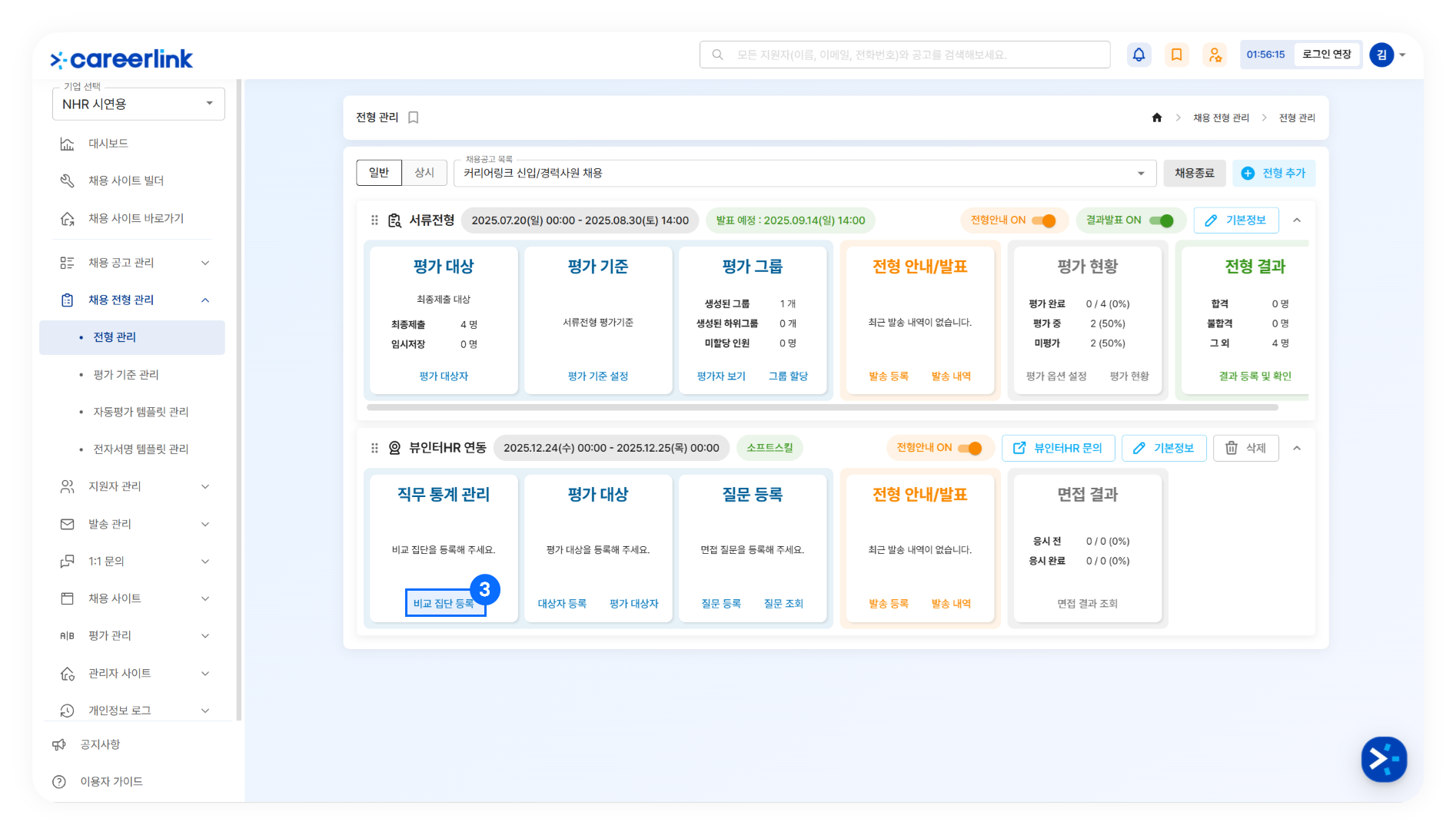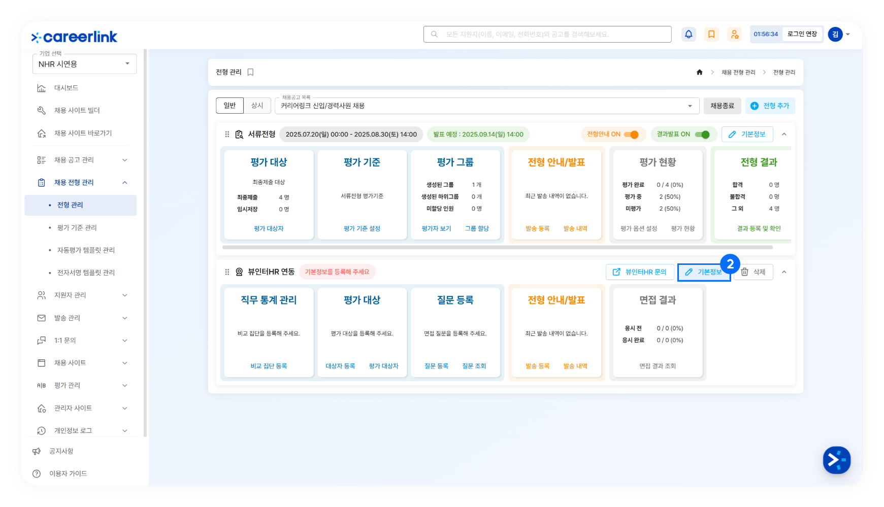 커리어링크 내에서 뷰인터 HR(AI면접) 전형 생성부터 결과 확인까지 모두 사용하실 수 있습니다.